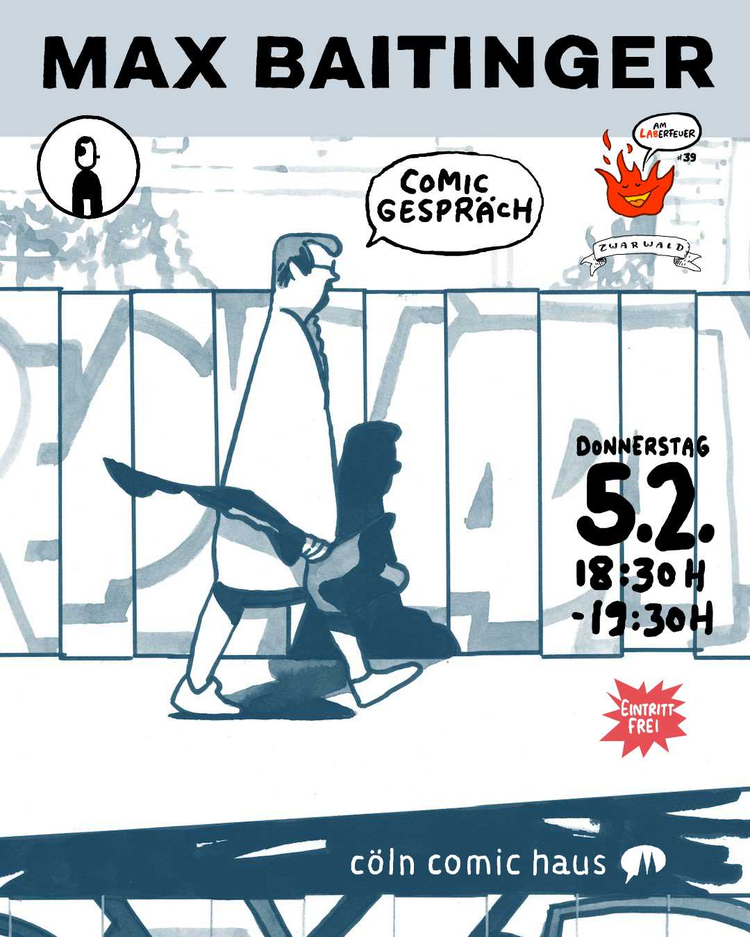 Organistert und moderiert wird “Am Laberfeuer” von Leo Leowald, der selbst den Comicstrip Zwarwald zeichnet.